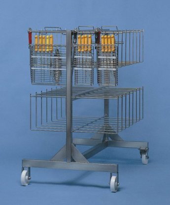 Znaky a výhody: Vozík umožňuje pohodlný a bezpečný spôsob prepravy a skladovania až 32 veľkých alebo 64 malých úložných košov Základná konštrukcia vozíka je vyrobená z nerezovej