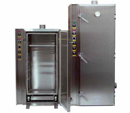 Znaky a výhody: Udiareň poskytuje dobré a konzistentné výsledky Vykurovacie telesá produkujú dym a zároveň udržiavajú teplo pri údení mäsa Vďaka izolačnej vrstve s hrúbkou 50 mm dochádza len k minimálnym tepelným stratám, čím sa zabezpečuje ekonomická prevádzka Udiareň poskytuje jednoduchú manipuláciu, úsporu času a čistú prácu v konštantnej teplote Udiareň zaručuje presné stanovenie chuti a konštantné výsledky chuti Udiareň s výškou 150 cm: Kapacita: 150 kg rýb / 100 kg mäsa Výkon: 6 kW 6 podporných mriežok Udiareň s výškou 200 cm: Kapacita: 300 kg rýb / 200 kg mäsa Výkon: 6 kW 10 podporných mriežok Udiareň zahŕňa: Termostat 50 mm izolovanú dvojitú stenu Vypínač Automatický časovač 3 úrovne vykurovania 2/4/6 kW Vstavaný teplomer vo dverách Spínač pre bočný ohrievač Pevné zámky dverí Technická špecifikácia: Šírka: 940 mm Hĺbka: 750 mm so závesmi dverí Napätie: 380 V Dymová rúrka: Ø 120 mm Doba údenia 60-80 min (pri 100 ° C) Šírka zvnútra: 630 mm Hĺbka zvnútra: 540 mm
