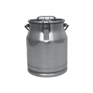 Hliníková kanva na mlieko s krytom. Nepriepustná vďaka dodatočnému upevneniu krytu pomocou konzoly a gumového tesnenia. Kovový držiak na prenášanie.